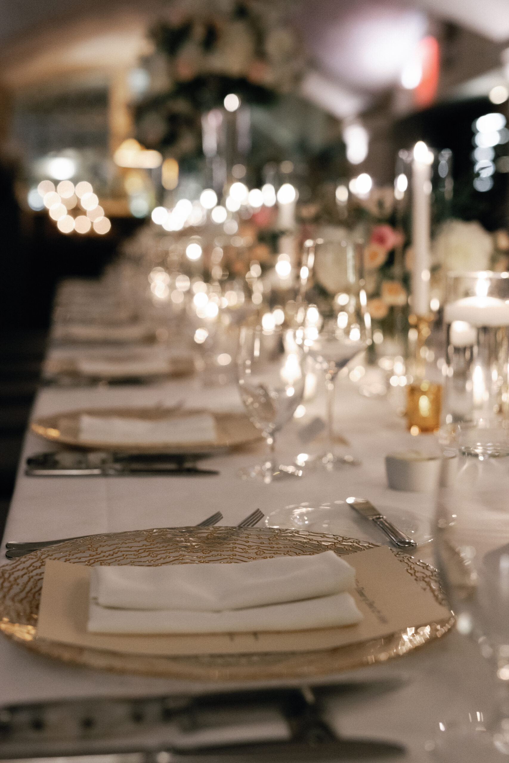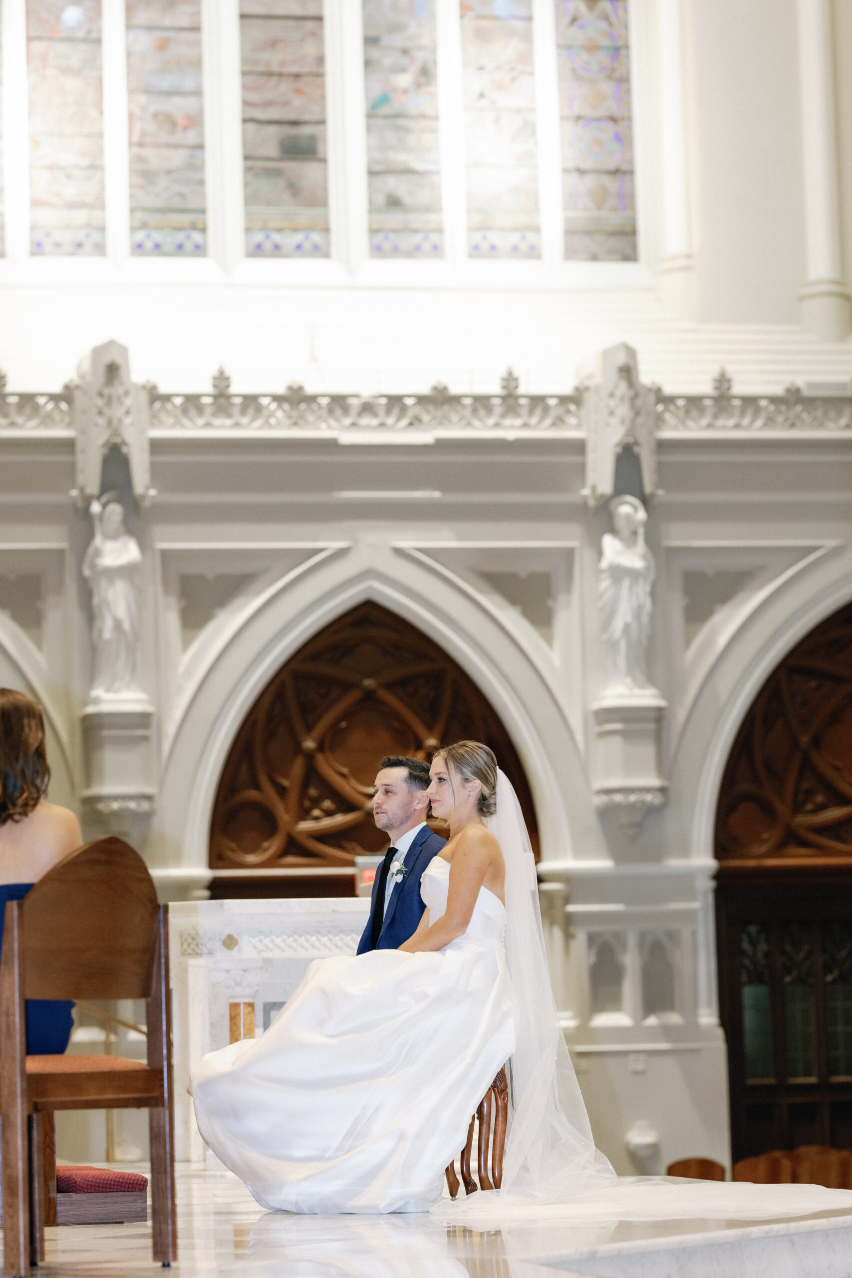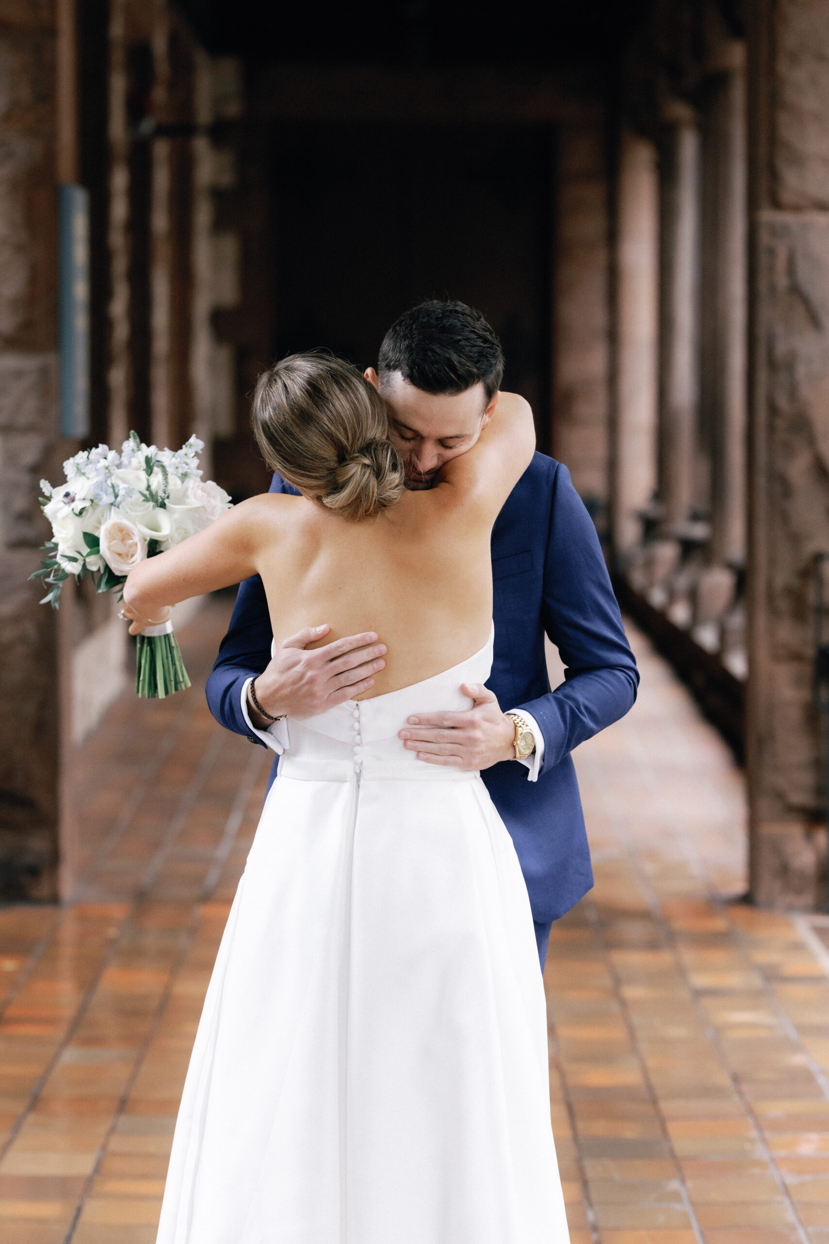 This intimate city wedding could best be described as city chic meets classic vibes. With the groom prepping at the Ritz Carlton, and the bride getting ready at the Fairmont Copley. The couple said their vows at the grand Notre Dame Cathedral with a reception soon after at Mooo restaurant. The wine room at Mooo is perfect for a small gathering and the candles and flowers made for a stunning ambience.