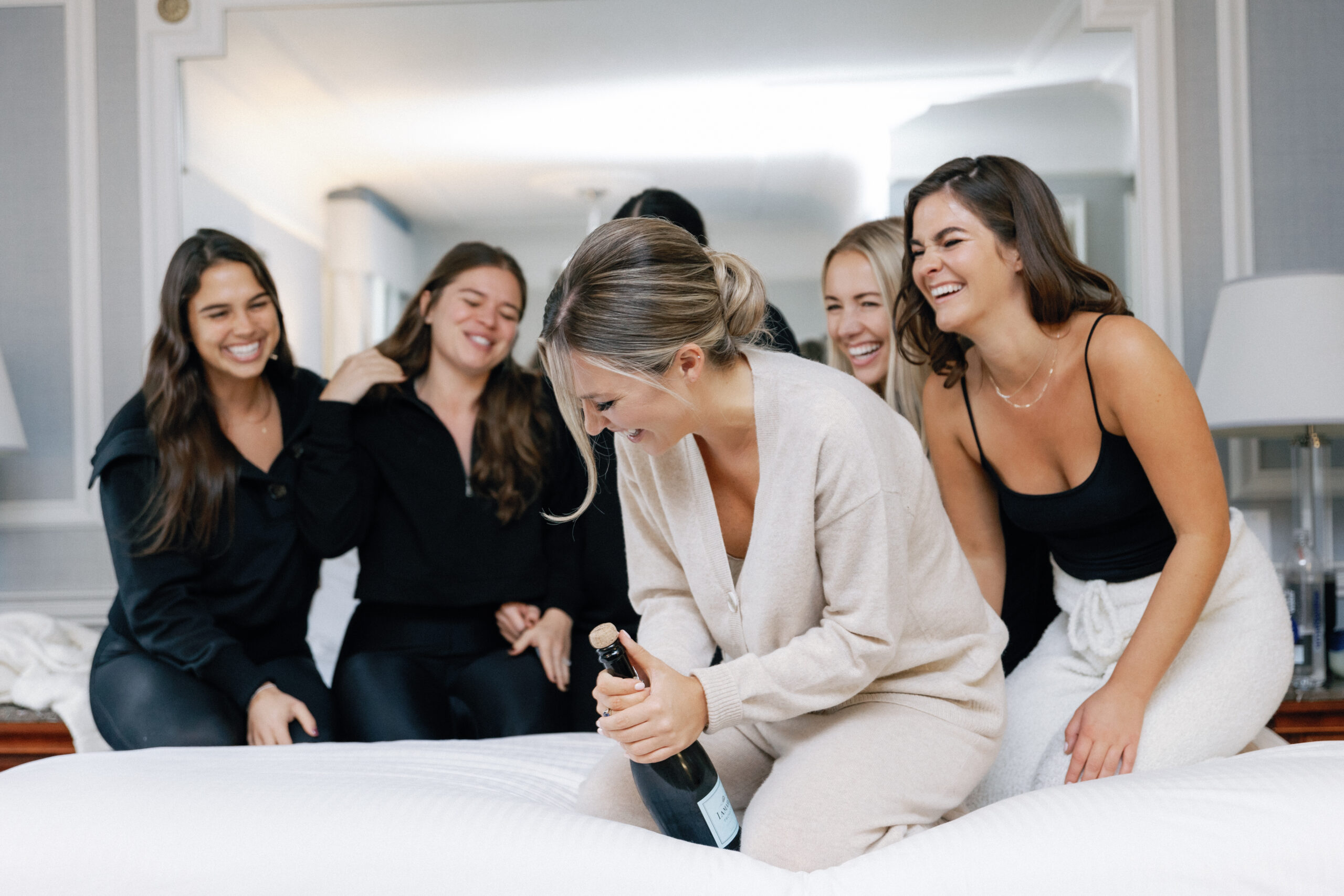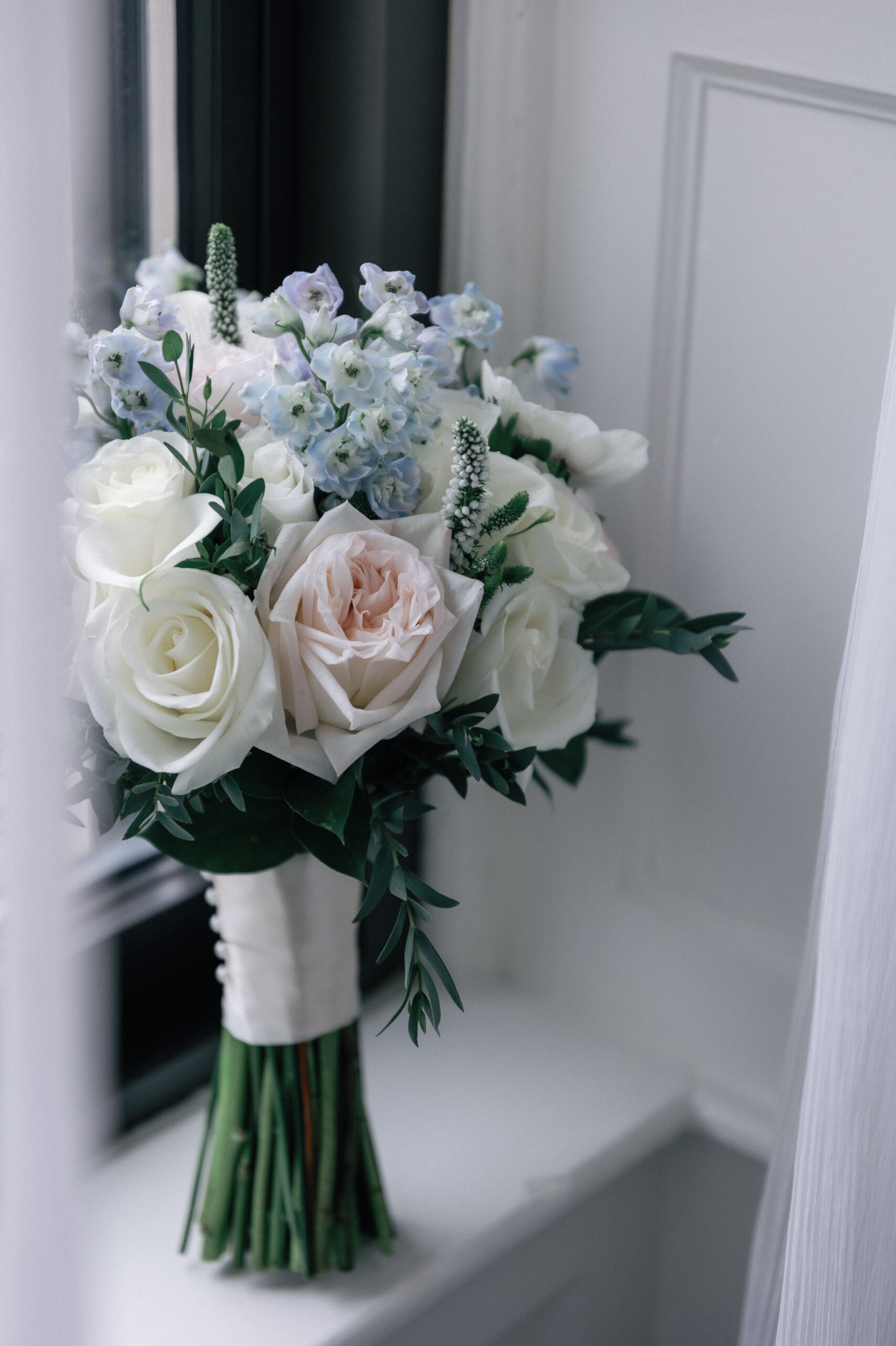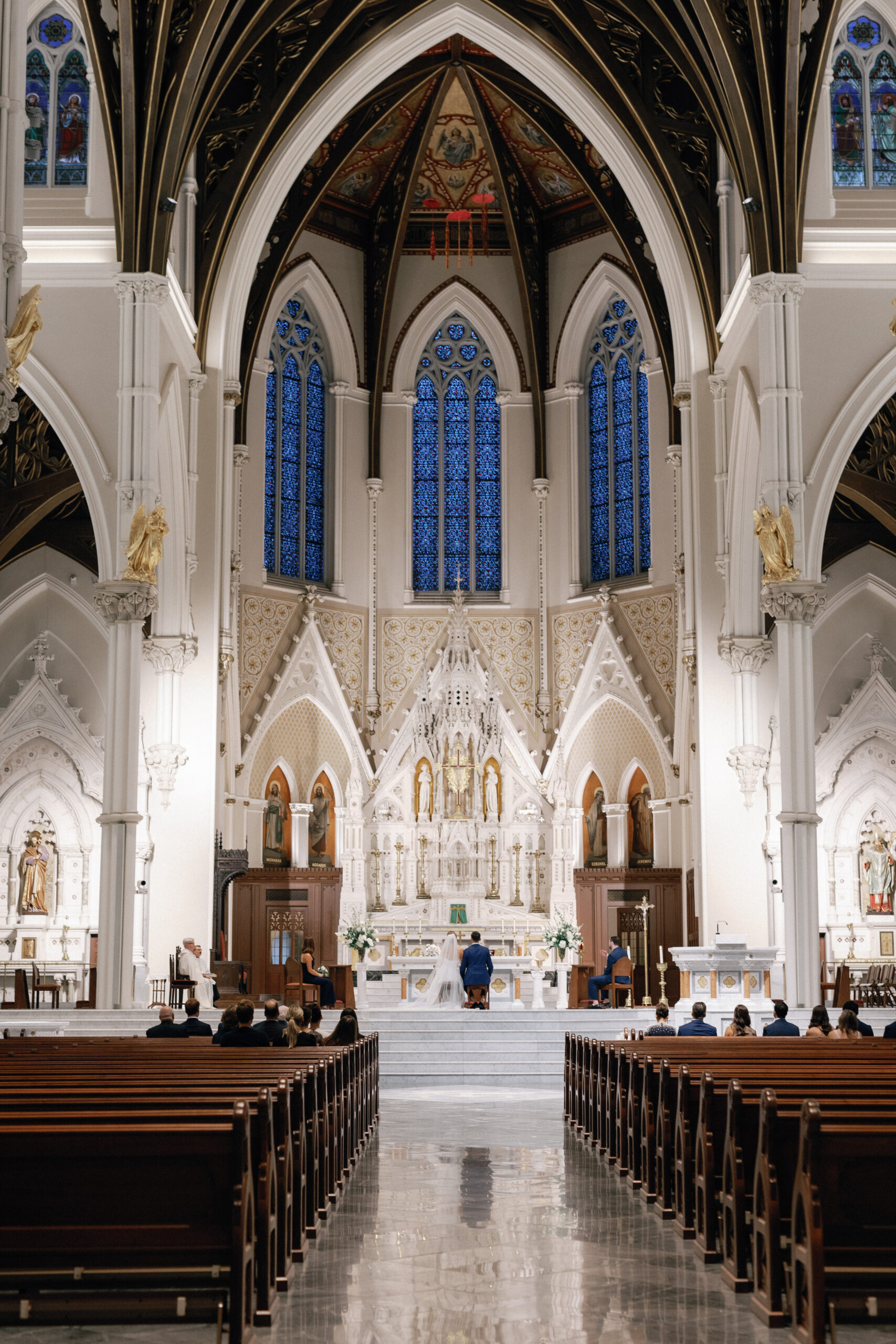 This intimate city wedding could best be described as city chic meets classic vibes. With the groom prepping at the Ritz Carlton, and the bride getting ready at the Fairmont Copley. The couple said their vows at the grand Notre Dame Cathedral with a reception soon after at Mooo restaurant. The wine room at Mooo is perfect for a small gathering and the candles and flowers made for a stunning ambience.